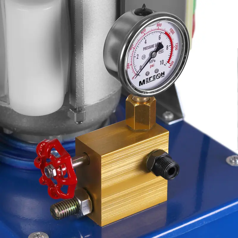 Одной из важных особенностей данной модели является низкий уровень шума во время работы, что делает условия труда более комфортными и безопасными для оператора. При этом агрегат способен развивать предельное давление до 6,0 МПа (что эквивалентно 60 кгс/см²), чего достаточно для проверки большинства типов трубопроводов, включая системы отопления, водоснабжения и другие инженерные коммуникации. Производительность оборудования составляет 360 литров в час, что гарантирует оперативное заполнение и опрессовку даже достаточно протяжённых систем.
