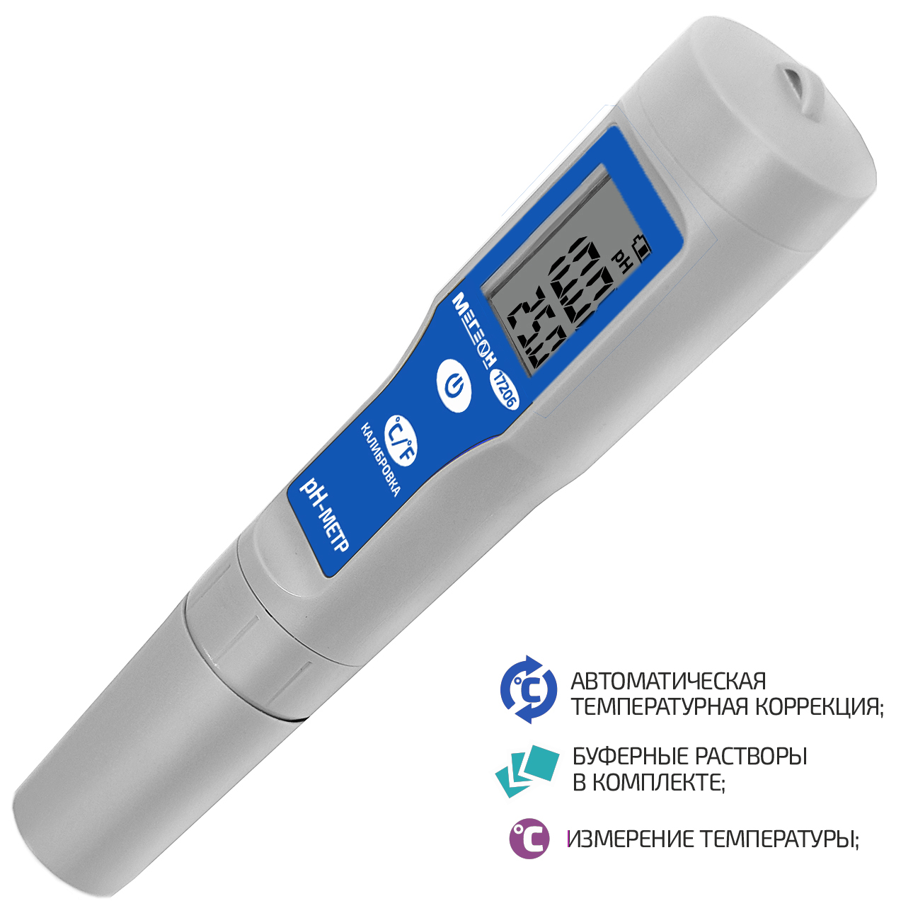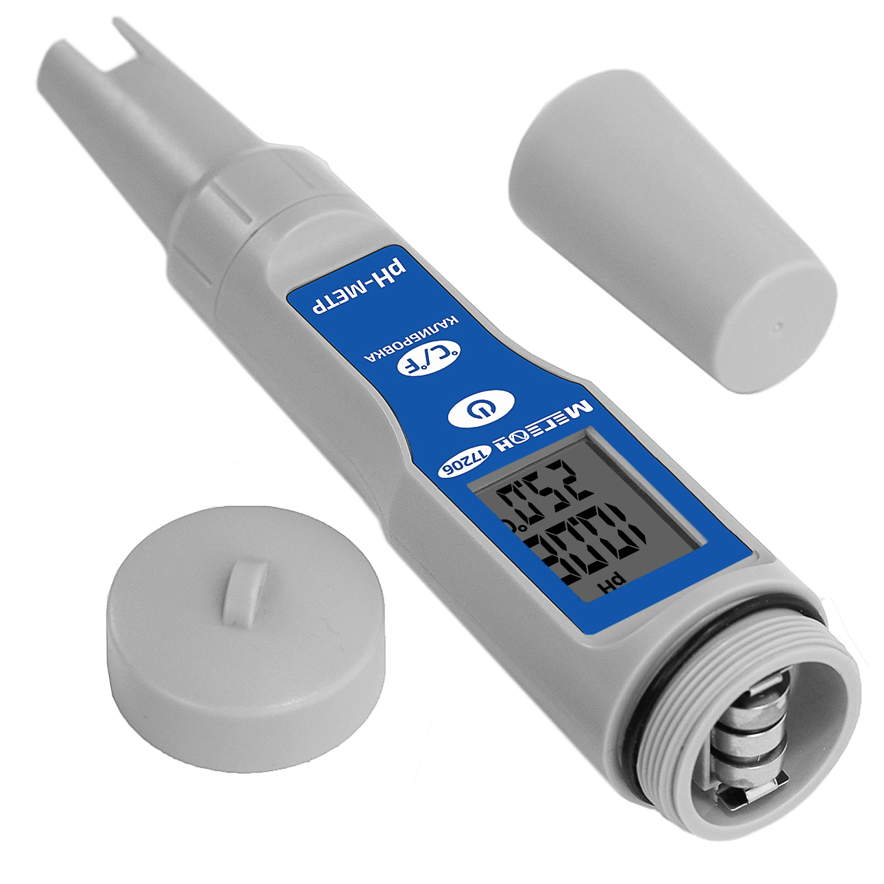 pH-метр МЕГЕОН 17206 - портативный измеритель уровня щелочности или кислотности. Принцип действия основывается на определении потенциала водорода, который, по сути, является количественным соотношением ионов Н+ и ОН - в воде. Благодаря этому возможно измерение кислотности жидкостей или грунта. Данный измеритель определяет кислотность по шкале от 0 до 14 баллов. Если pH на отметке 7, значит среда нейтральна. Чем выше уровень pH, тем выше показатель щёлочности. Если pH ниже 7, кислотность выше. Данный измеритель pH качественно отличается от тестеров, которые измеряют уровень кислотности при помощи тест - полосок, так как шаг измерений составляет всего 1/2 балла и показатели погрешности далеки от идеала. Проведение химического теста основывается на методе сравнения оттенков. Тест - полоски и жидкость имеют невысокую стоимость, но стоит обратить внимание на то, что они могут быть использованы только один раз и в итоге будут стоить значительно дороже цифрового pH измерителя МЕГЕОН 17206. Прибор имеет интегрированный термометр, который обеспечивает автоматическую подстройку под разницу температур между базовым и текущим показателями по Цельсию. Данная технология обозначается, как ATC, что в развернутом виде означает автоматическую компенсацию температуры. Стандартный комплект поставки включает в себя все необходимое для проведения калибровки прибора. Каждый экземпляр проходит первичную калибровку на заводе.