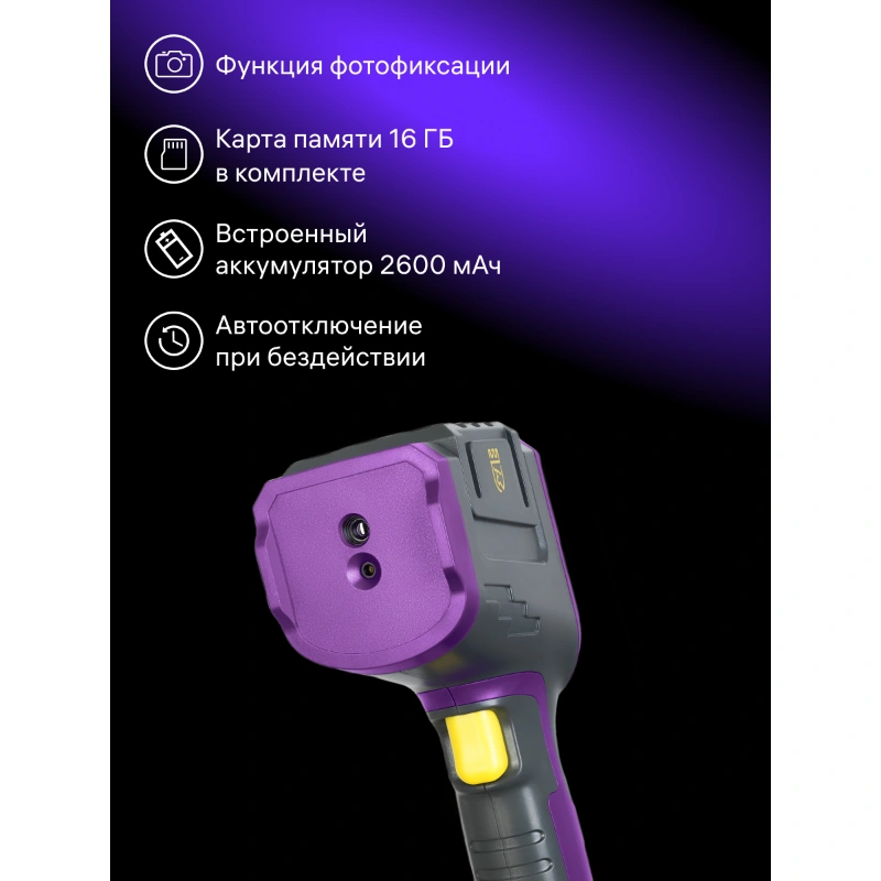 | Дополнительно | время отклика: 150 мс, индикатор низкого заряда батареи, разрешение камеры: 2 мегапикселя, регулируемая излучательная способность от 0,1 до 0,99, функция автоотключения |
